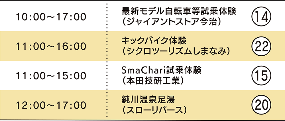 イベントで走り終えた後は、市内のサウナや温泉で疲れを癒し、今治の食を満喫する「ササ飯(サイクリング×サウナ・温泉×飯・食事)」も、ぜひお楽しみください!